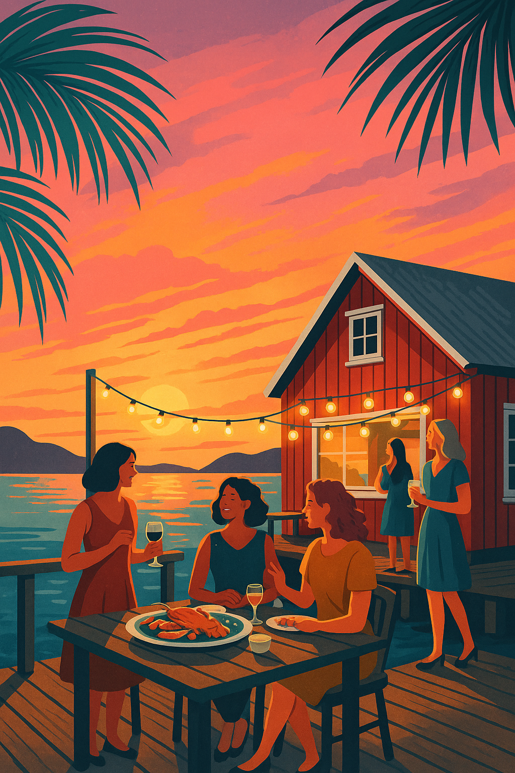 Torsdag 28. august inviterer vi til årets seinsommerfest ved sjøkanten på den helt unike og stemningsfulle Fole Festlig Rorbua 🎉